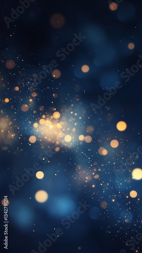 Golden Light Bokeh Glittering on Dark Blue Background for Festive Design