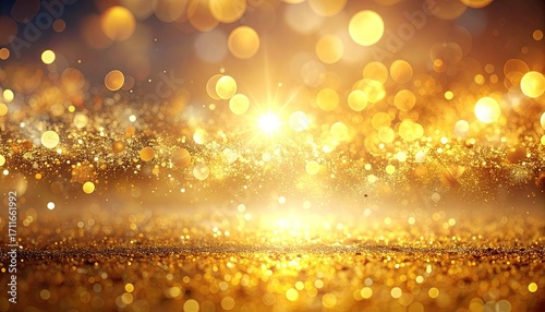 Golden Light Bursting Through Abstract Dust Background with Bokeh Effects for Festive Celebration