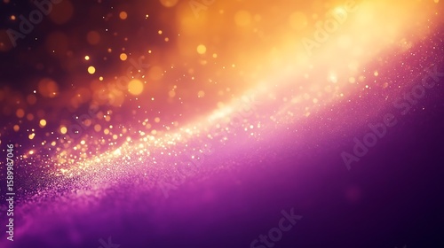 Golden Light Particles Floating with Purple Mist Abstract Festive Background