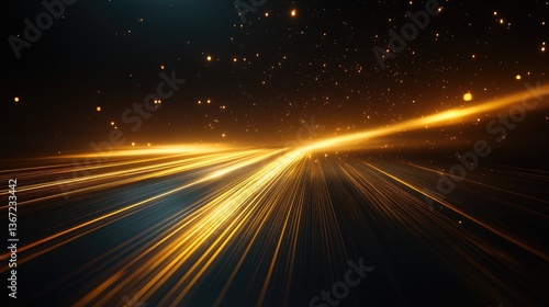 Golden light streaks speed across dark space; cosmic background, motion design