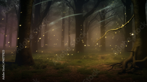 Golden Lights Scattered Across A Mystical Forest At Dusk