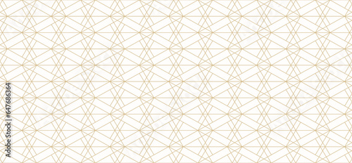 Golden line pattern. Subtle vector geometric seamless texture with delicate grid, thin lines, diamonds, triangles. Abstract gold and white background. Art deco style ornament. Luxury minimal design