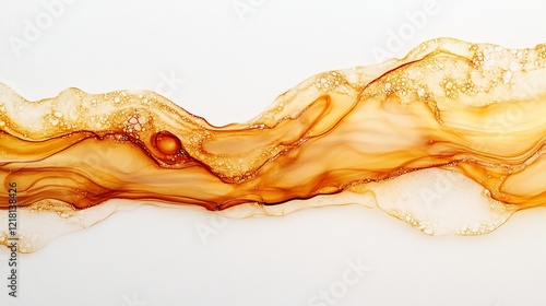 Golden liquid flowing, white background, abstract art, design element