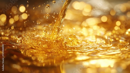 Golden Liquid Pouring with Sparkling Bokeh Background