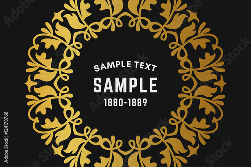 Golden luxurious logo frame. Golden on black background. Vector illustration. Decorative elements for business card, invitation, greeting card template