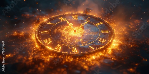 Golden Moments in Time: A Majestic Clock Swirling with Sparkles, Symbolizing the Eternal Flow of Time, Generative AI