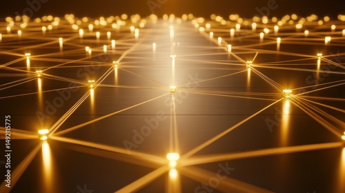 Golden network connection on dark surface