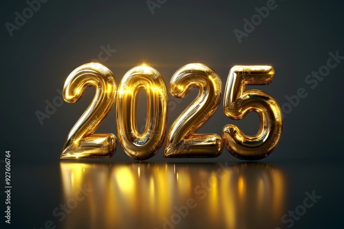 Golden numbers 2025 on a white table with Christmas trees and bokeh lights. Happy New Year 2025 is coming concept.