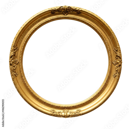 Golden Ornate Oval Frame on Transparent Background