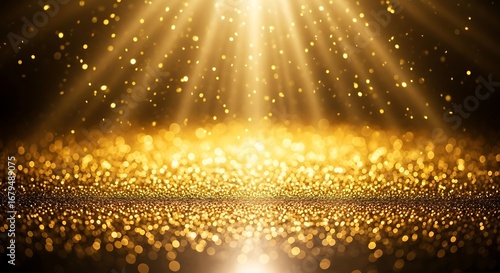 Golden particles shimmering in a dazzling display of light and elegant luxury atmosphere