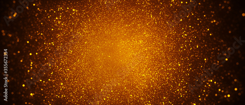 golden particles shining stars dust bokeh glitter awards dust abstract background. Futuristic glittering in space on black background.