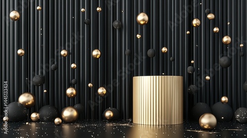 Golden Podium with Black Luxury Background, and 3D Render.