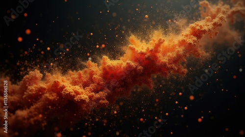 Golden Powder Clusters with Striking Red Tips Scattered on a Weathered Surface