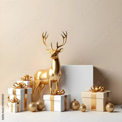 Golden Reindeer with Christmas Presents