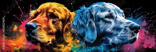 golden retriever in neon colors in a pop art style