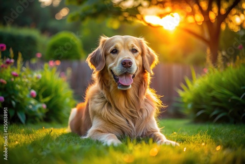 Golden Retriever joyfully frolics in the twilight, bathed in the soft glow of the night.