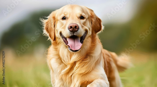 Golden retriever joyfully running through meadow, showcasing its playful spirit and vibrant energy