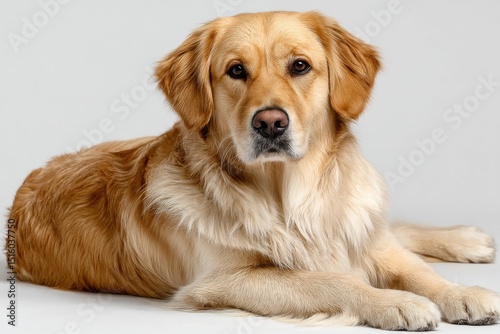 Golden Retriever Lying Down in Studio, Representing Pet Ownership and Animal Companionship for Veterinary or Family Content : Generative AI