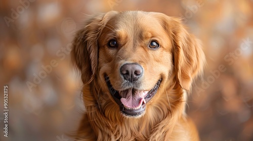 Golden retriever portrait, warm smile, friendly eyes, vibrant fur, soft focus background, natural indoor lighting, candid pet photography, joyful expression.