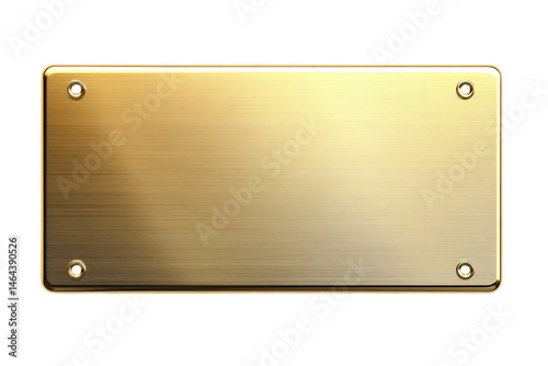 Golden Shiny Blank Metal Nameplate Isolated on White Background