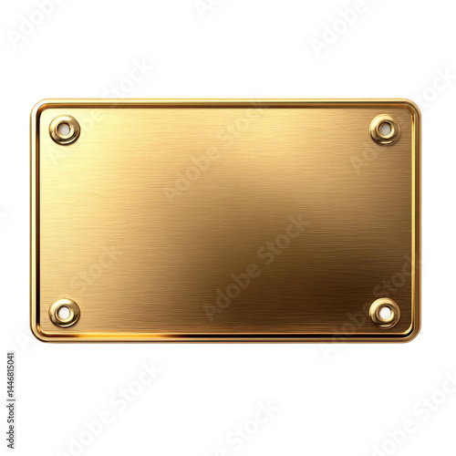 golden shiny blank metal nameplate isolated on white background, clipping path [Transparent Background PNG].