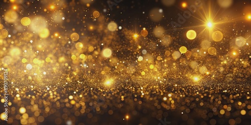 Golden Sparkles with a Bright Star Burst, Abstract, Background, Bokeh, Glitter