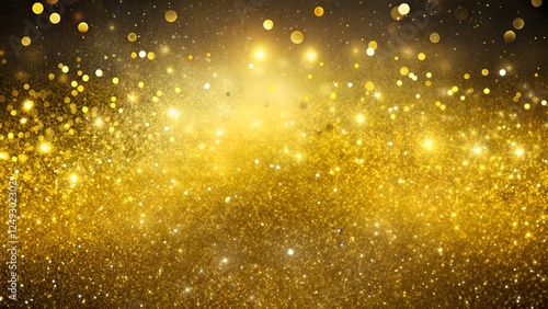 Golden sparkling bokeh background with shining lights for festive designs and celebrations, copy space