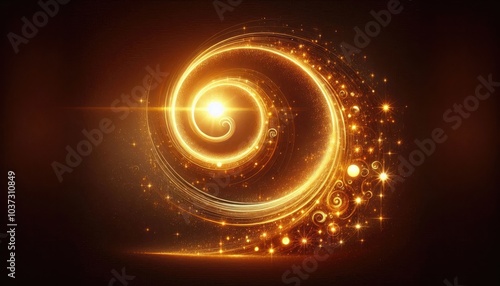 Golden Spiral of Light: A High-Resolution, Ultra-Realistic 8K Artwork Featuring a Radiant Swirl of Sparkles, Glowing Orbs, and Magical Starbursts in Warm Golden Tones
