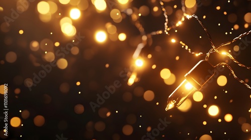 Golden String Lights Gleam in Festive Bokeh Background