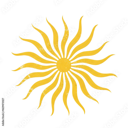 Golden Sun Symbol on Black Backdrop Retro Style Design