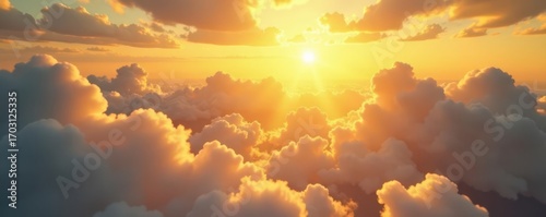 Golden sunlight bathes fluffy clouds, symbolizing future riches , glow, photo, clouds