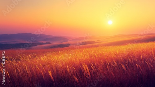 Golden sunset over rolling fields, capturing the beauty of nature's tranquility.