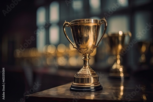 Golden Triumph. Trophy on Blurred Background of Success. Generative AI illustrations.