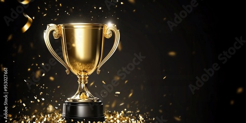 Golden trophy competition winner with streamers. Business champion and competition concept background. Generative AI