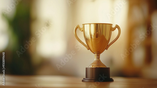 Golden Trophy on a Wooden Table Symbolizing Achievement, Success, and Victory