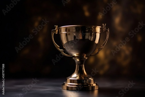 Golden Trophy on Bokeh Background: Concept of Achievement and Winning with Copy Space