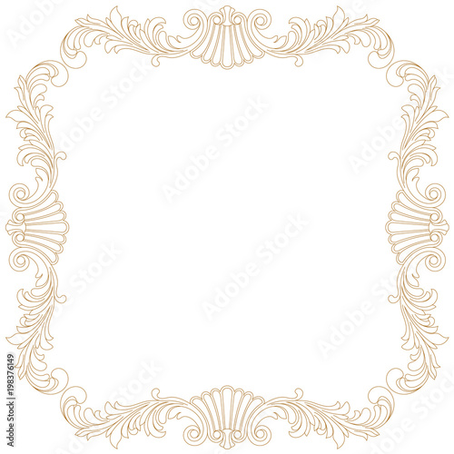 Golden vintage border frame engraving with retro ornament pattern in antique baroque style decorative design. Vector