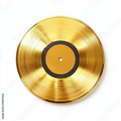 Golden vinyl record on a white background radiating prestige and success capturing the essence of music history with a modern twist and high angle shot