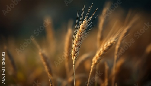Golden Wheat Field at Sunset: Ripe Grain Close-Up