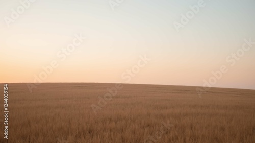 Golden Wheat Field Under Soft Sunset Light in Expansive Horizon