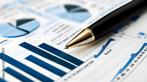 Gold-Trimmed Pen Resting on a Blue and White Bar Graph