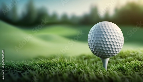 Golf ball on golf course background. Based on Generative AI