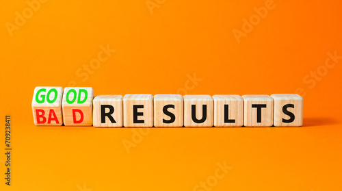 Good or bad results symbol. Concept words Good results Bad results on beautiful wooden blocks. Beautiful orange table orange background. Business good bad results concept. Copy space