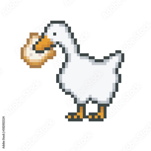 Goose with a slice of bread, pixel art meme