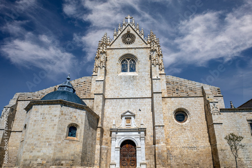 Gothic style facade of the Catholic Cathedral of San Antolín in Palencia, Castilla y Leon, Spain