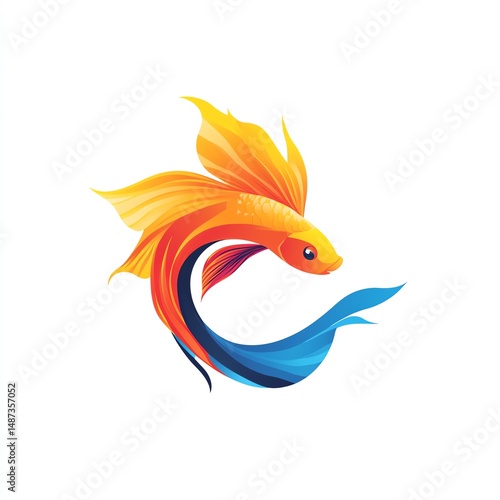 Graceful Betta Fish Swims in a Colorful, Artistic Display. The vibrant colors and fluid lines create a captivating image.