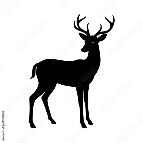 Graceful deer standing alert with antlers Line Art Vector illustration