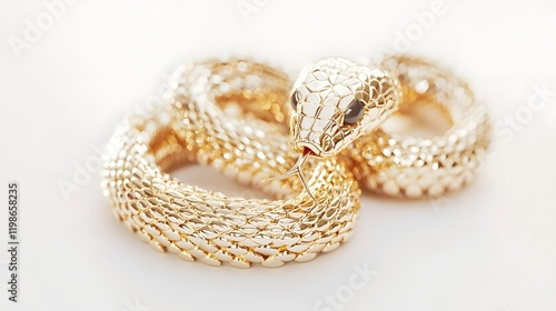 Graceful Golden-Scaled Snake Coiled Elegantly on White Background