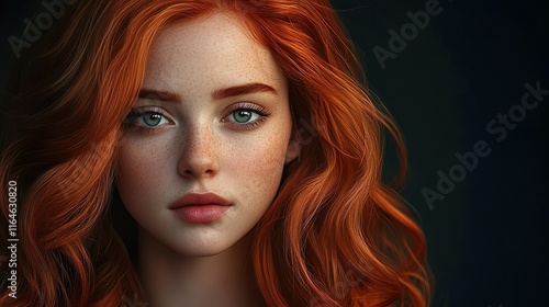 Graceful Red Hair Woman Stunning Studio Lighting Artistic Beauty Portrait