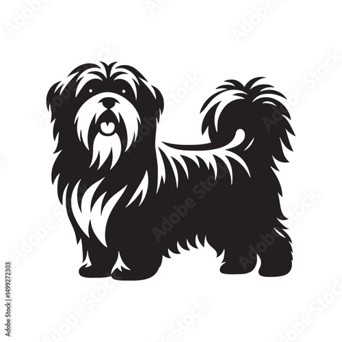 **"Graceful Tibetan Terrier Vector Silhouette: Fluffy Coat, Distinctive Build, and Friendly Stance Captured in Clean, Minimalist Style for Crafts, Prints, and Digital Artwork"**